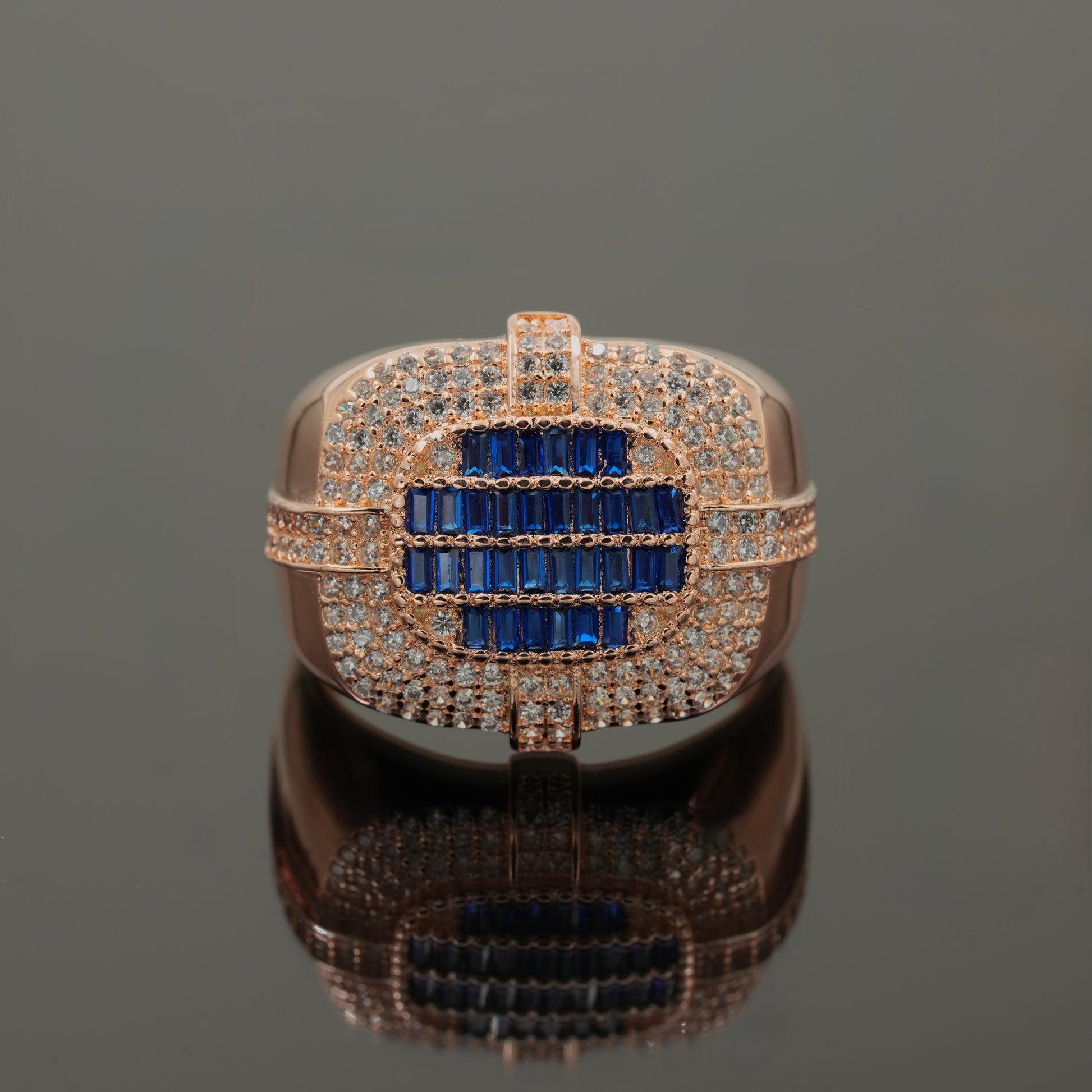 925 Silver Men’s Blue Sapphire & CZ Statement Ring – Rose Gold Finish