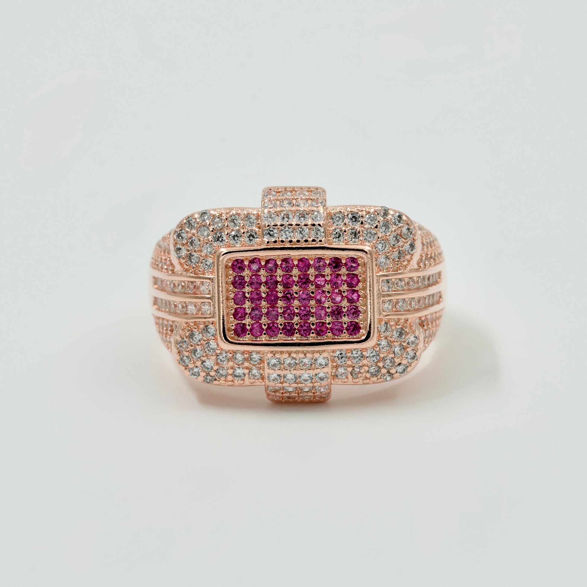 925 Silver Rose-Gold Finish Men’s Statement Ring with Pink CZ Stones