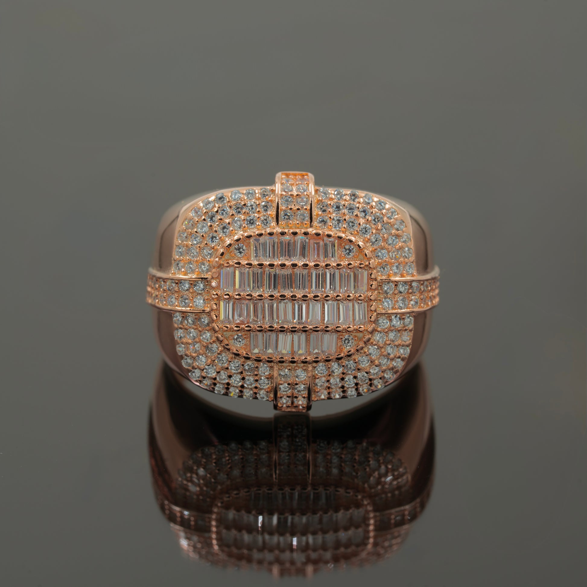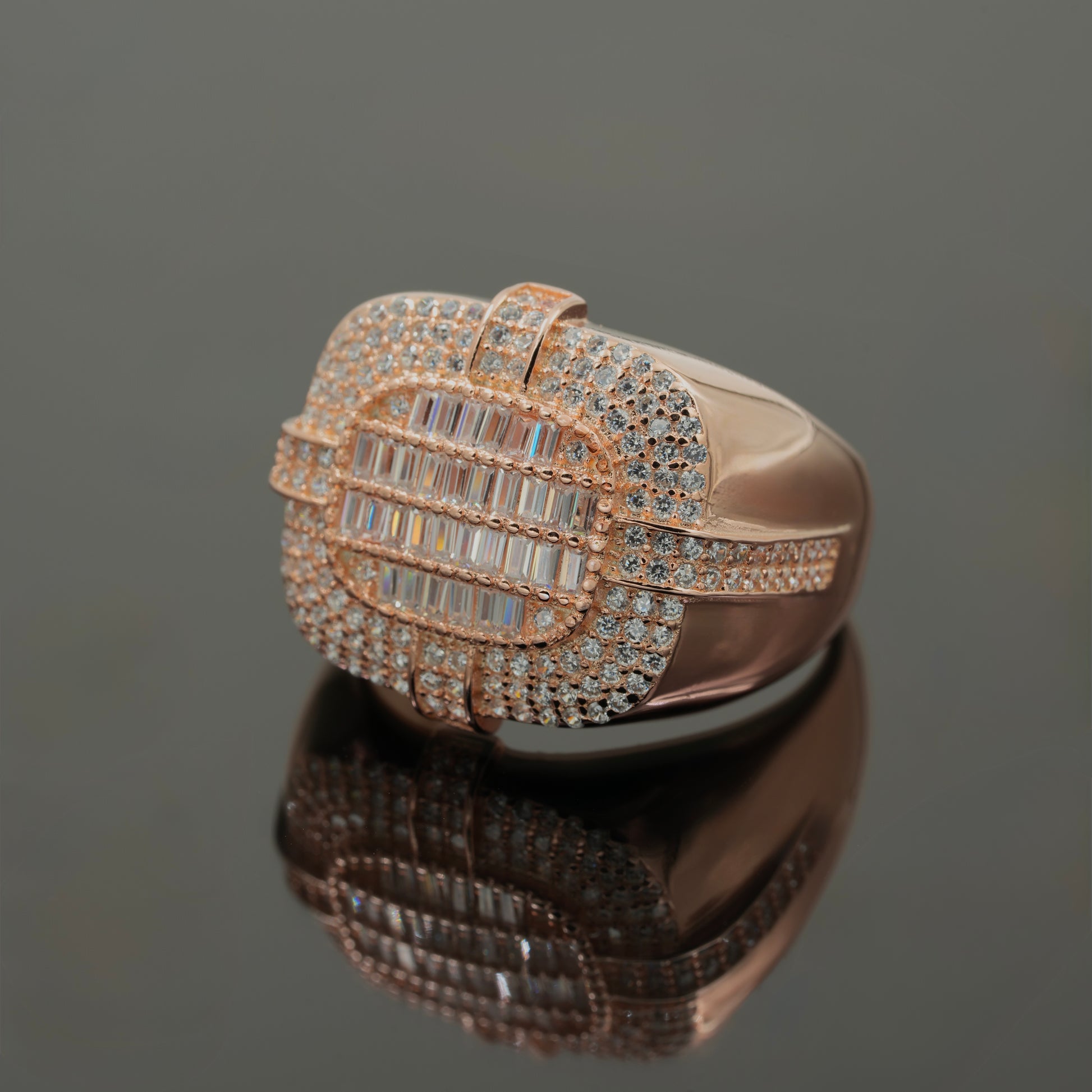 925 Silver Rose Gold Men’s Luxury Statement Ring with CZ & Baguette Diamonds