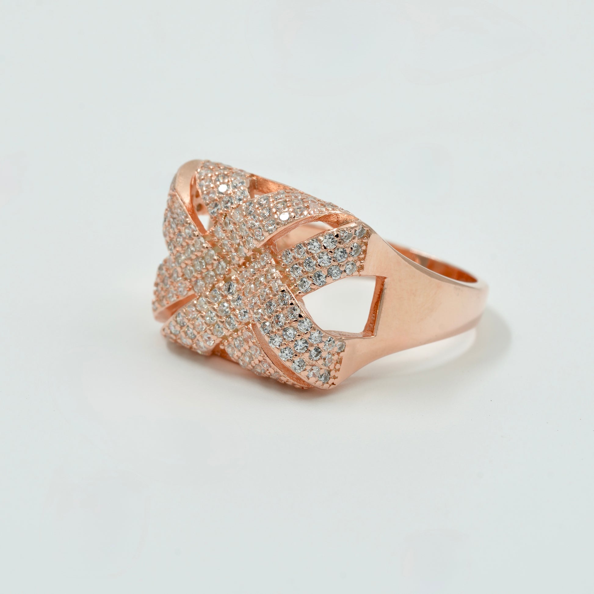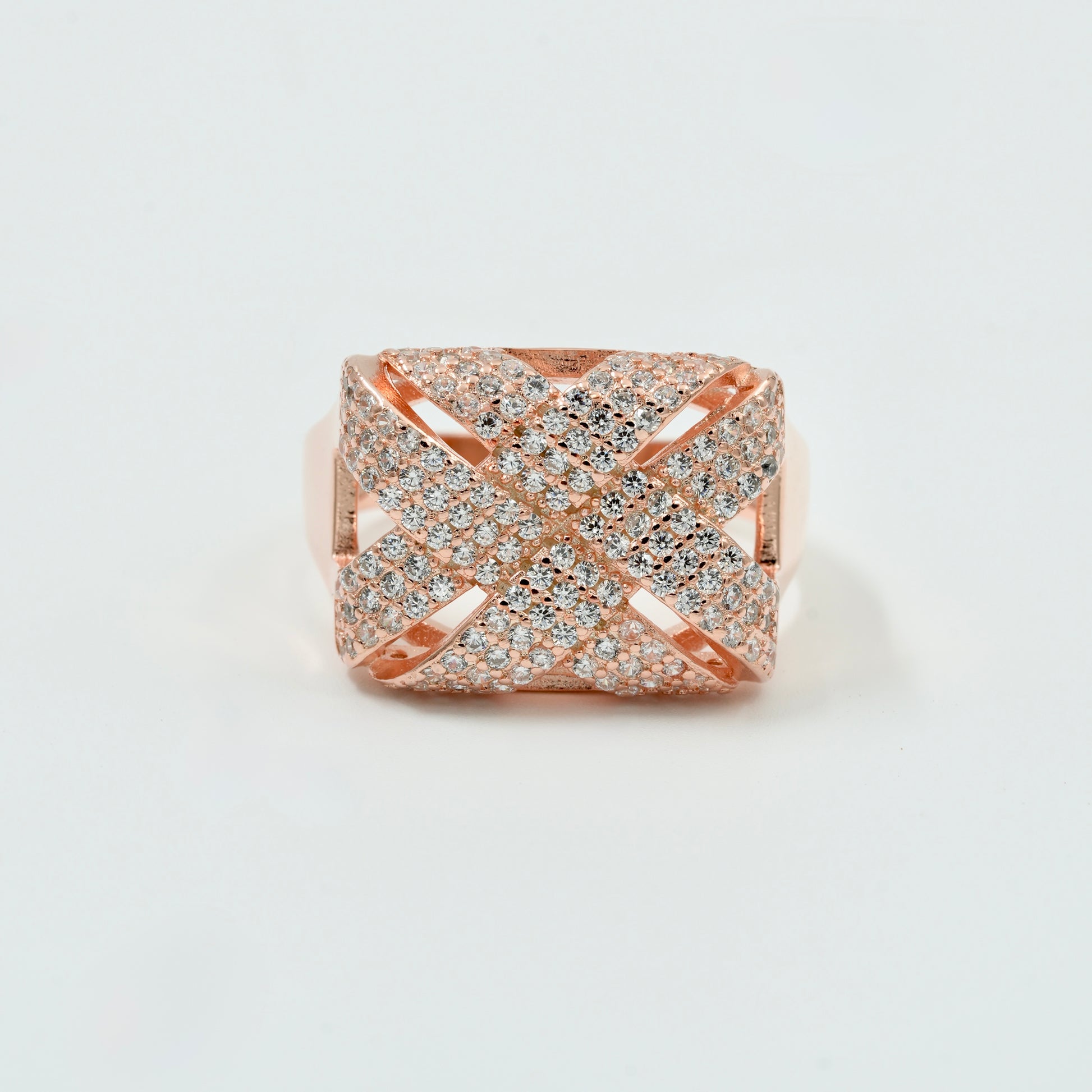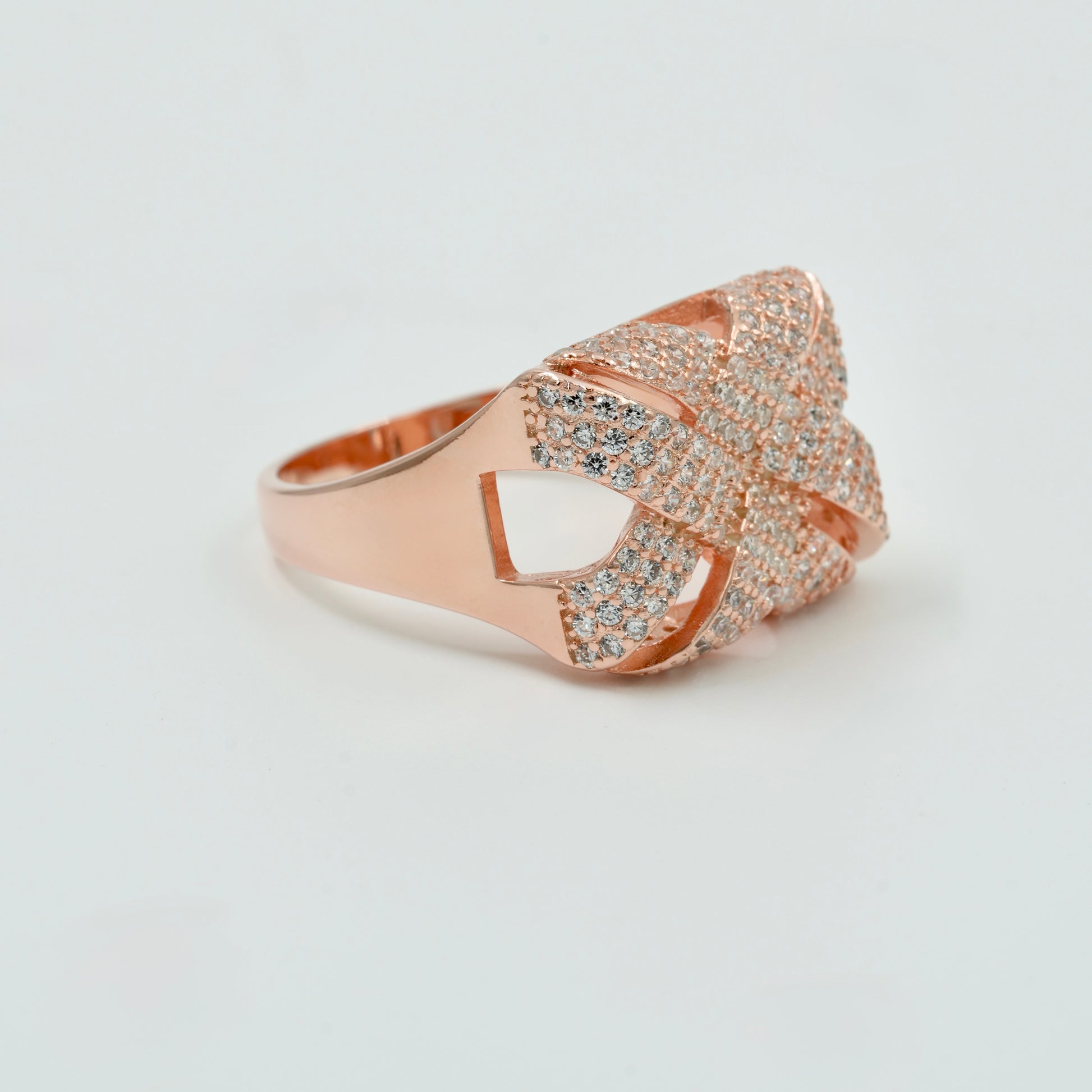 925 Silver Rose Gold Men’s Statement Ring – Criss-Cross CZ Diamond Design