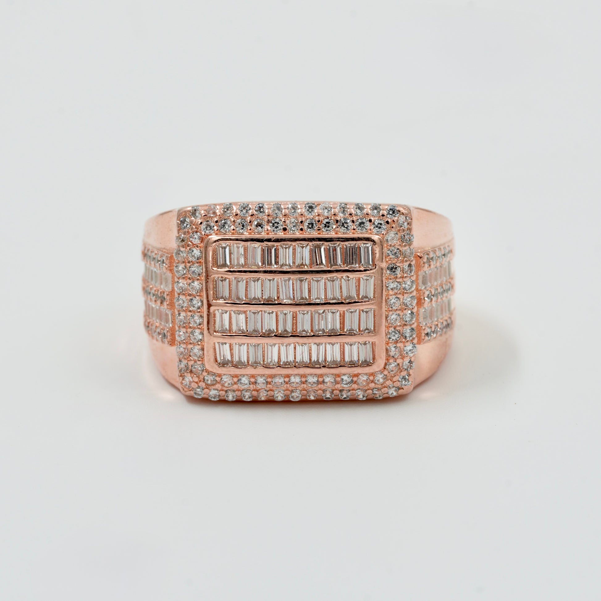 925 Silver Rose Gold Men’s Statement Ring with CZ & Baguette Diamonds