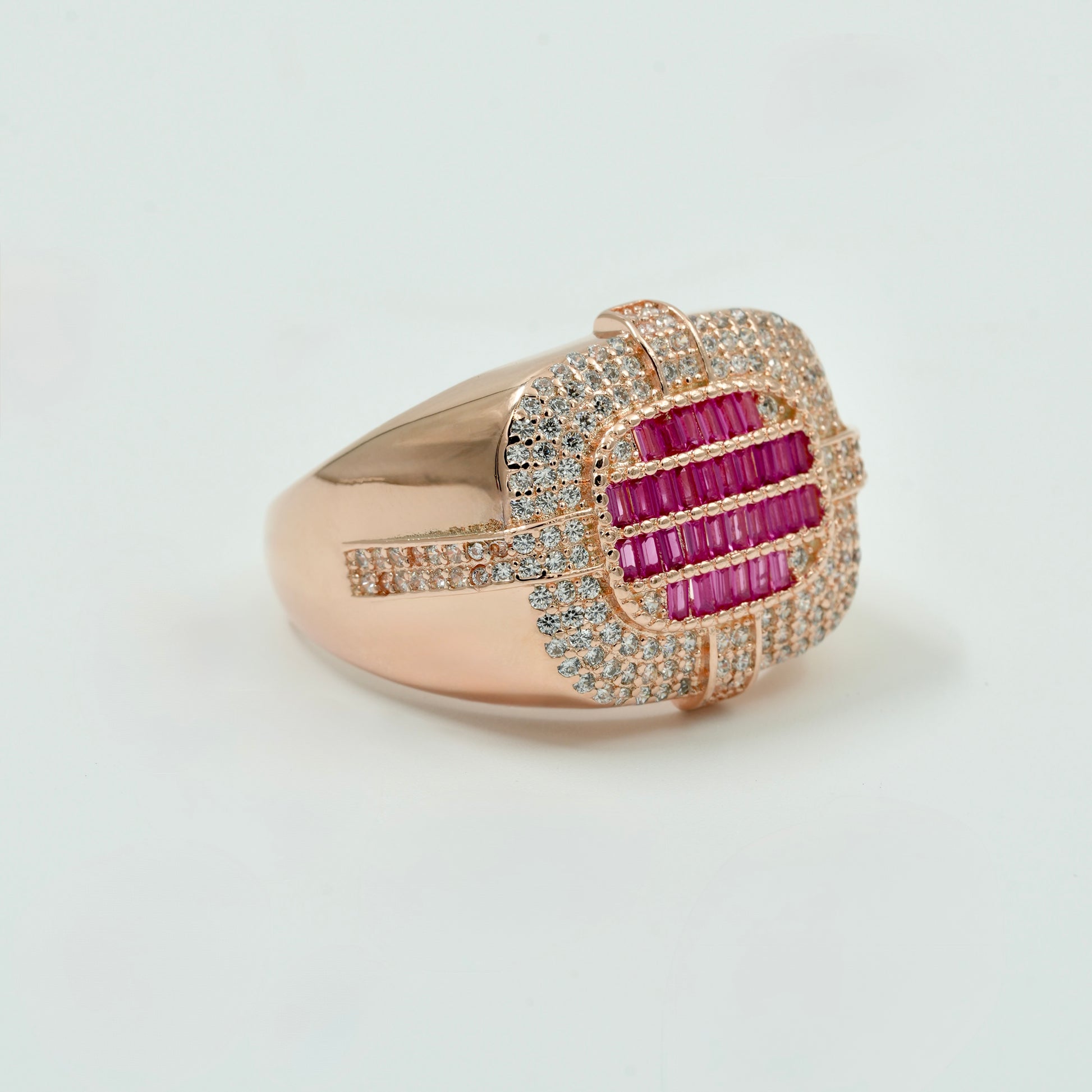 925 Silver Ruby & CZ Statement Ring for Men – Rose Gold Finish