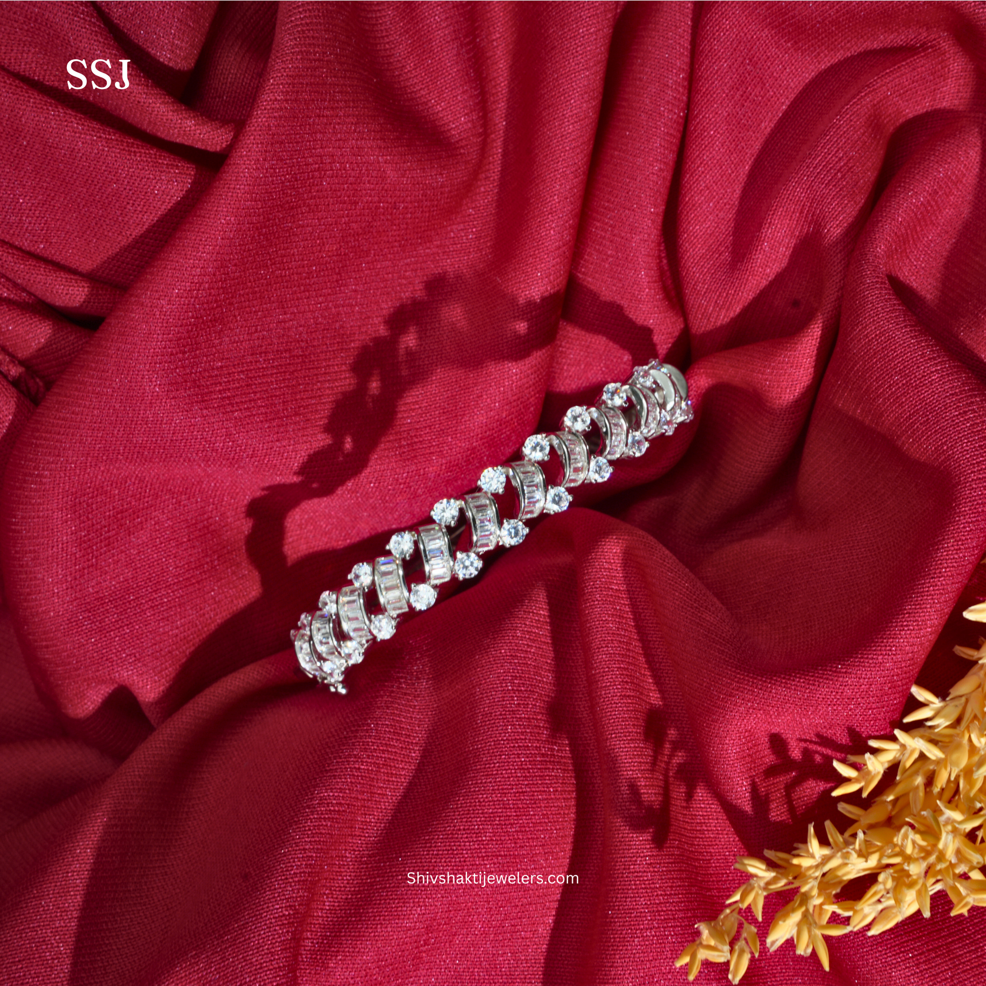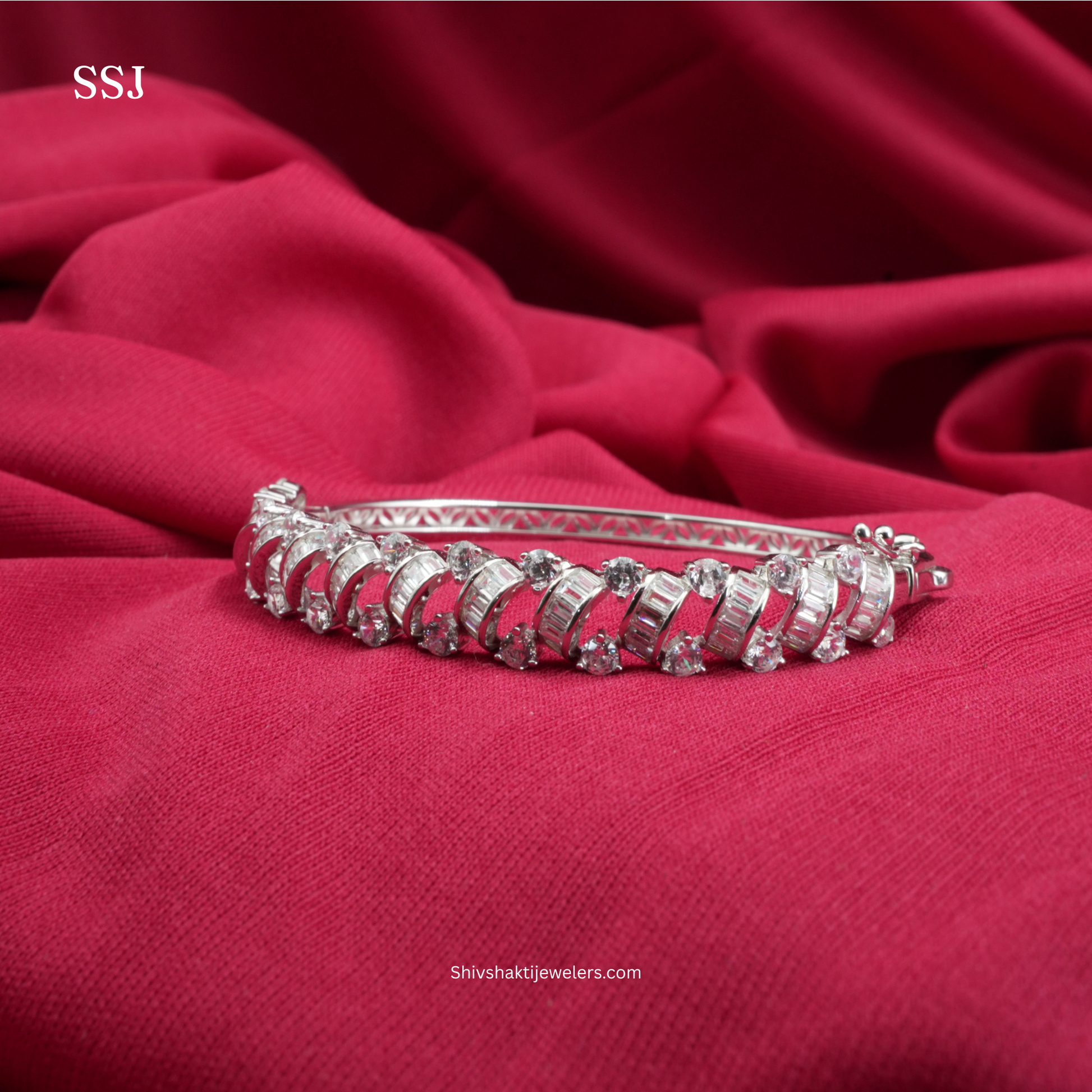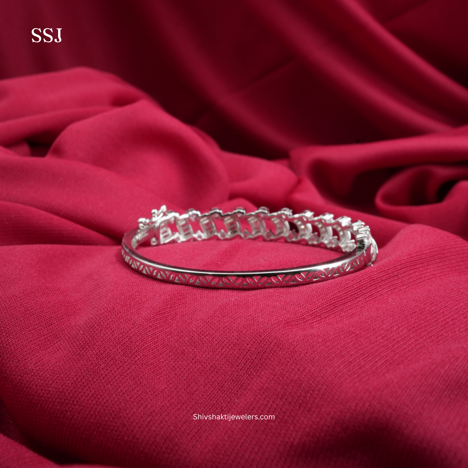 Elevate your wrist game with our premium CZ stone bangle – an elegant masterpiece with dual-cut brilliance. Designed for those who love timeless sparkle, this silver-finish bangle fuses tradition with modern shine, making it ideal for grand occasions or high-end evening looks.